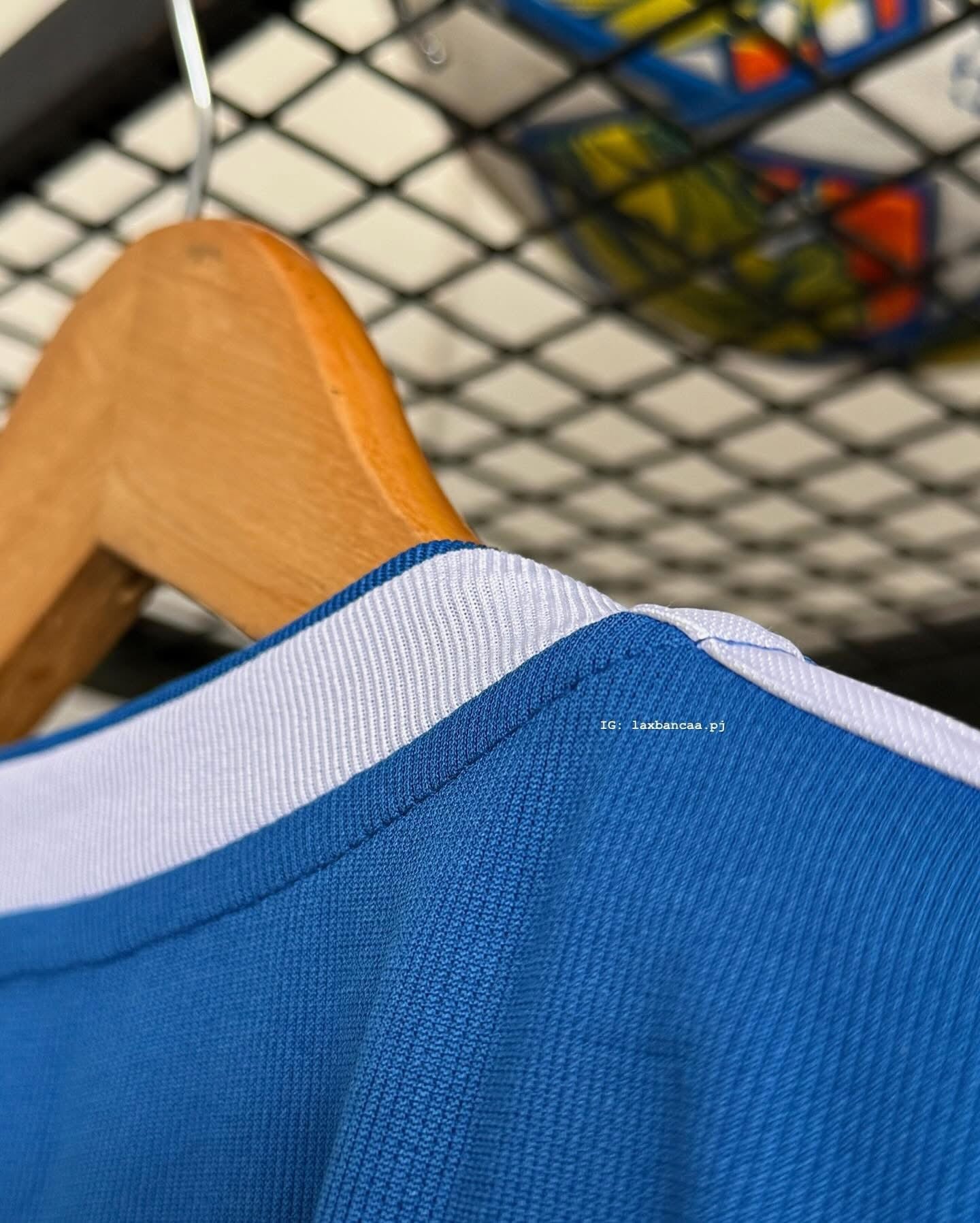 - Design unique : Coloris bleu vibrant avec des finitions blanches sur le col et les manches.